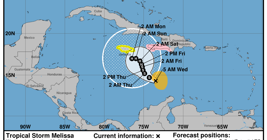 Tropical Storm Melissa is expected to bring lots of rain to the Dominican Republic, Haiti and Jamaica but its path beyond that isn't clear, the National Hurricane Center says.