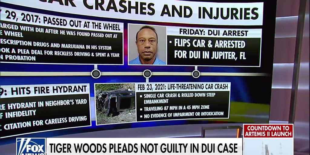 The 50-year-old golf superstar was arrested and charged Friday with driving under the influence after a rollover crash in Florida. He pleaded not guilty Tuesday.